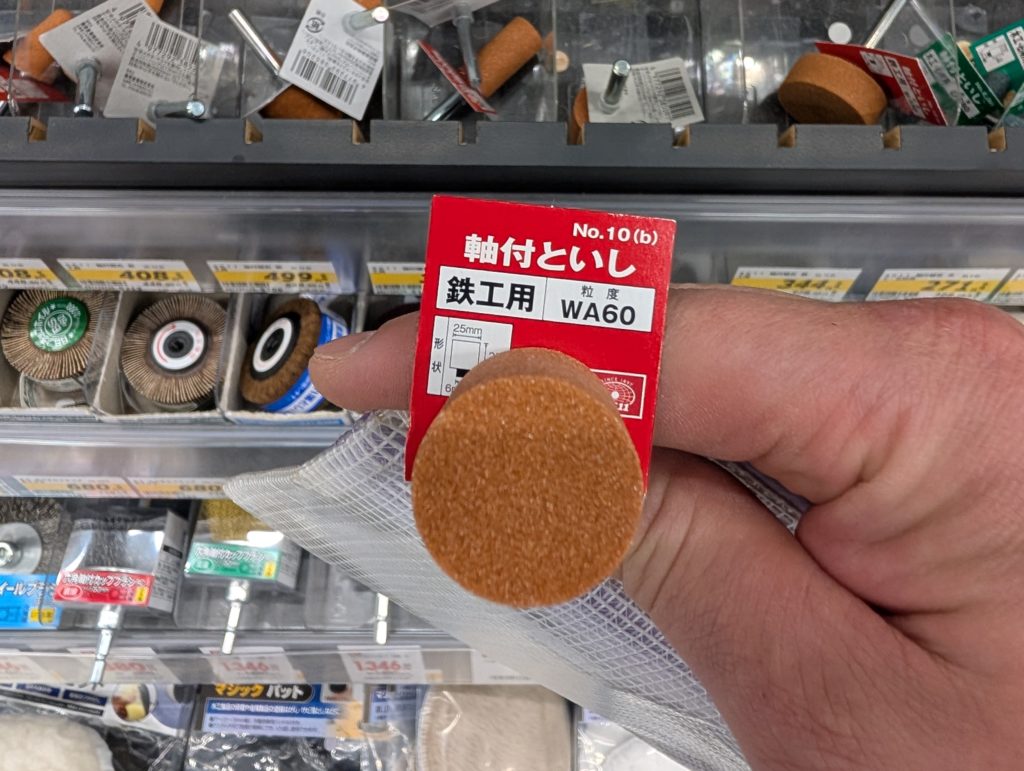 色々あるけど、お目当ての使えそうなものがない、そんな中見つけた鉄工用の砥石、、使えるか分からないけど購入して帰る。