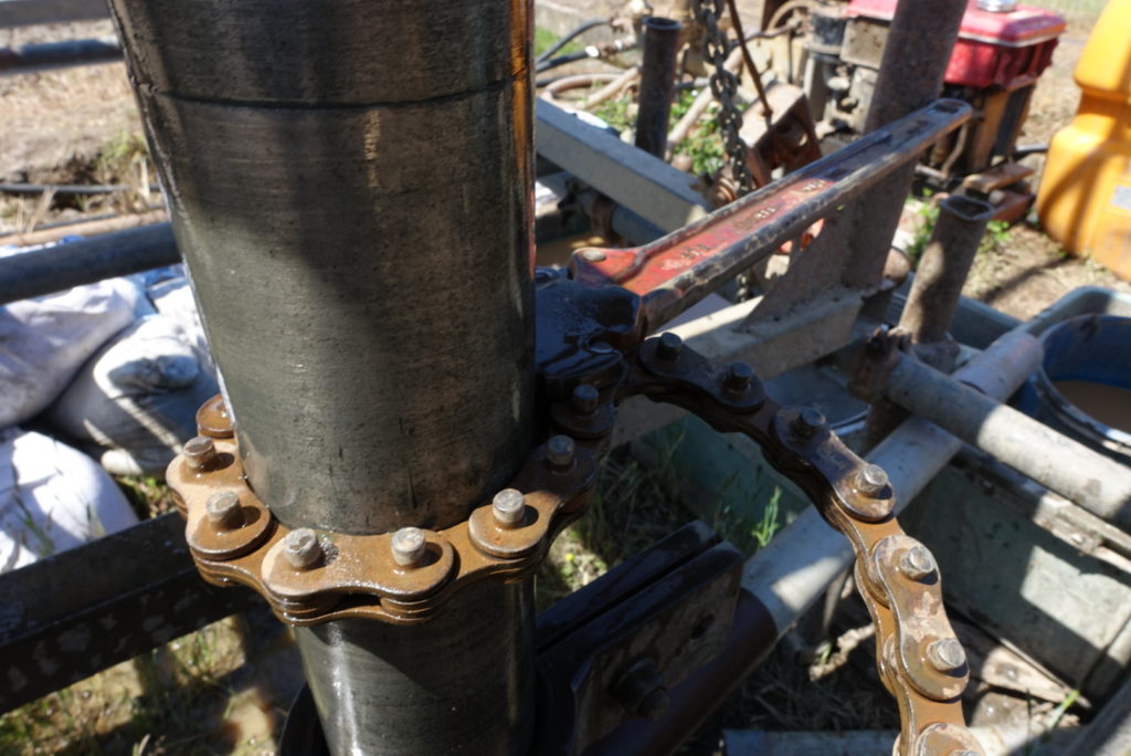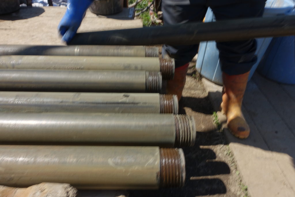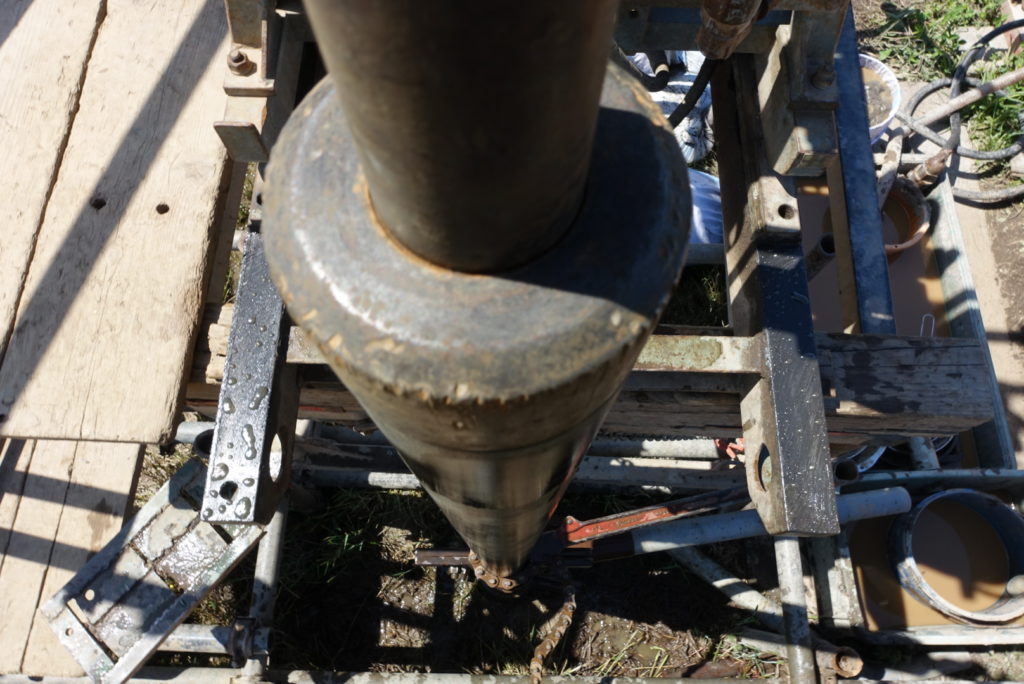 ケーシングを抜き終わり、小休憩してから別孔へ機械を移動させる。