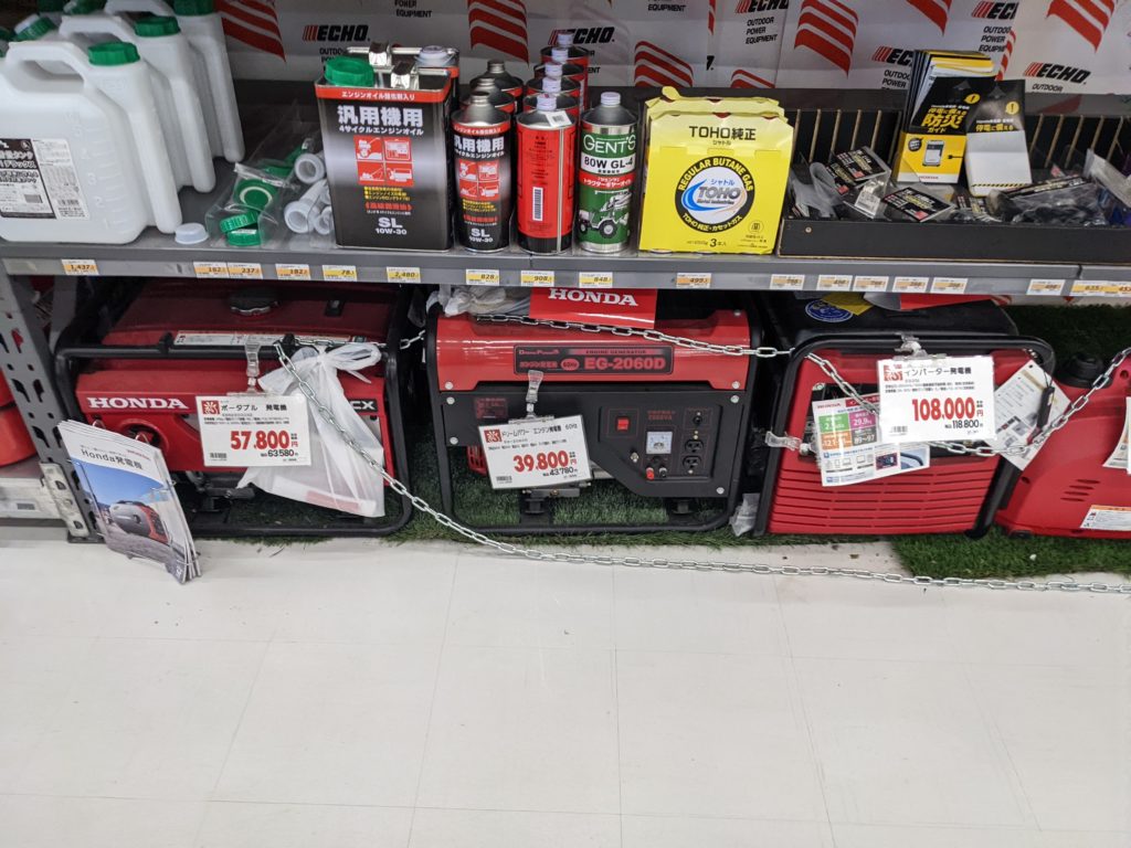(発電機欲しいなぁー)と思って現場近くのホームセンターで発電機を見ていました。